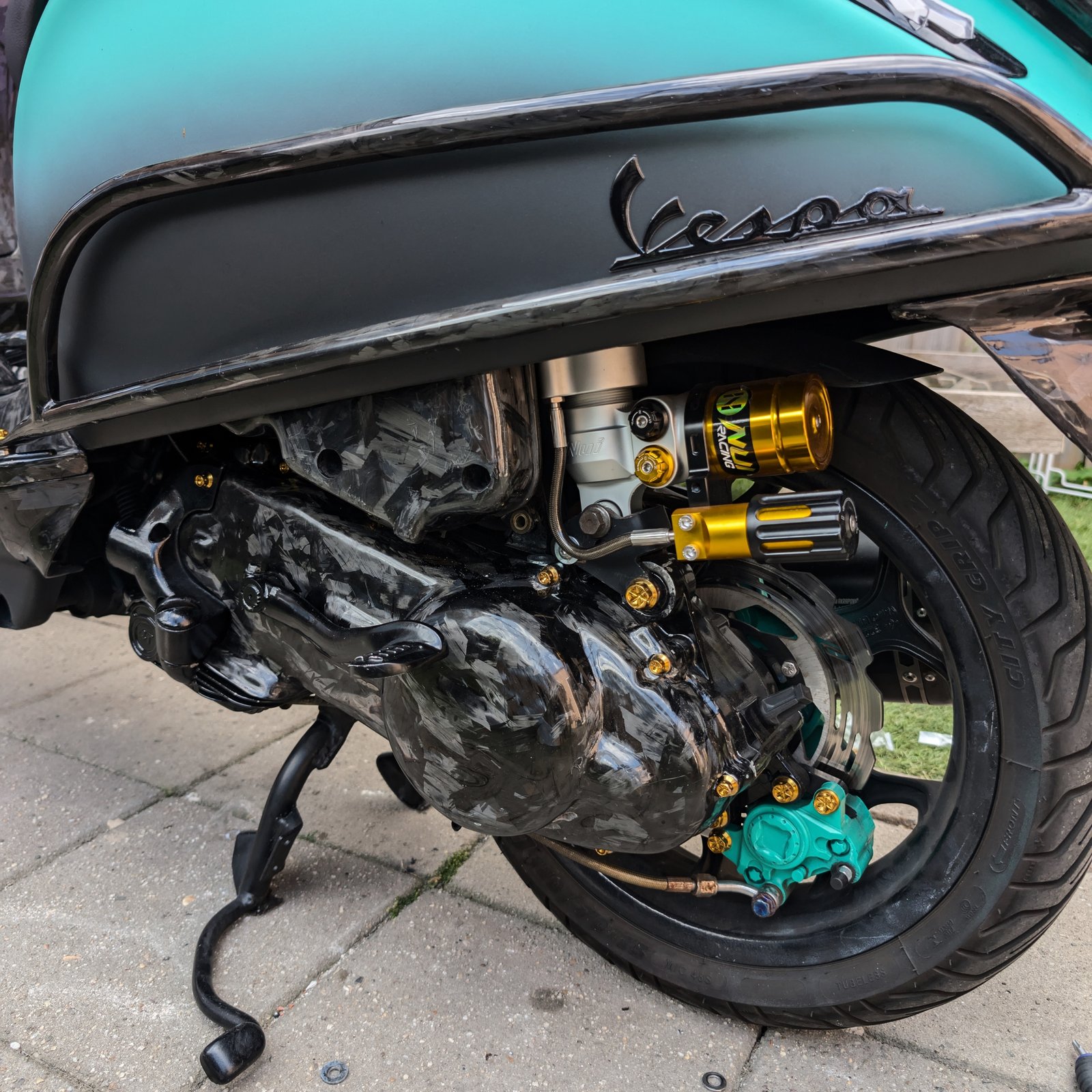 Volledig te personaliseren: Wij bieden ook maatwerk, zoals onderdelen met op maat gemaakte gaten – ideaal voor een persoonlijke touch. (zie Custom Kleur pagina’s op de website of dm op insta @piaggiocarbon)